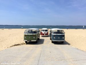 Les agences Vintage Camper Bordeaux, Toulouse et Lyon louent 3 combi minibus aux couleurs de la célèbre marque de tongues Havaianas pour transporter des festivaliers au festival Calvi on the rock en Corse