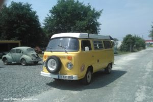 Il s’agit d’un combi minibus orange et blanc de 1978.