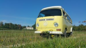 Un couple à louer à l’agence de Bordeaux un combi pour partir accompagner un autre propriétaire de combi au Pays Basque espagnol