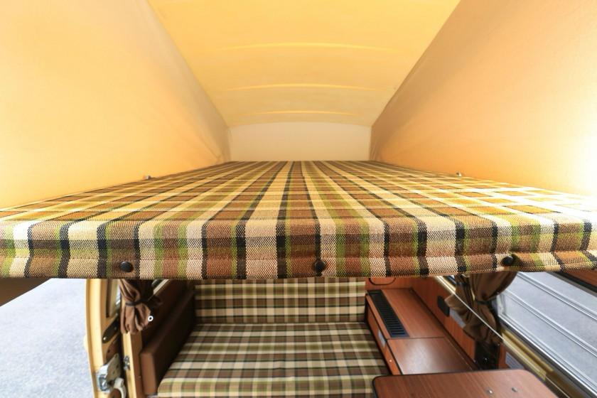 Pour dormir, vous avez le luxe de choisir votre chambre : 2 places en hauteur dans la rehausse (un vrai nid d’oiseau pour les enfants) afin de profiter de la vue dès le réveil, ou 2 places en bas sur le lit banquette confortable.