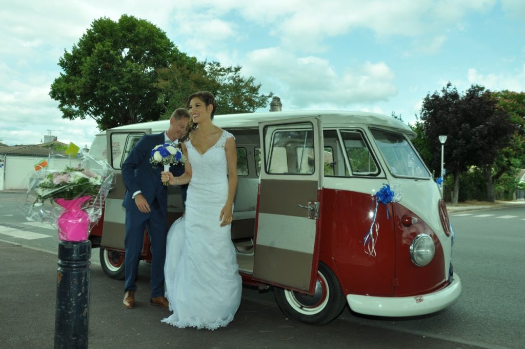location de combi pour mariage ce couple de superbe mariés a choisi notre magnifique combi split pour leur mariage