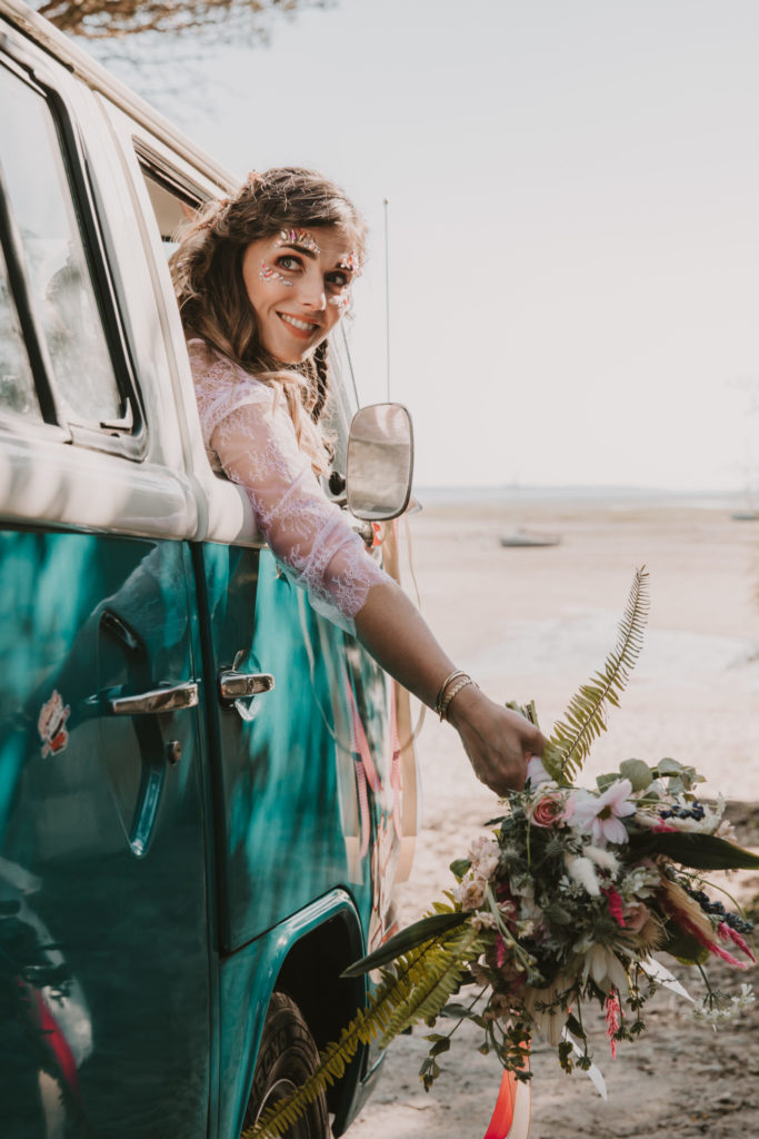 un combi loué pour un mariage ambiance surfer dans l'entre de mer à côté de Bordeaux!