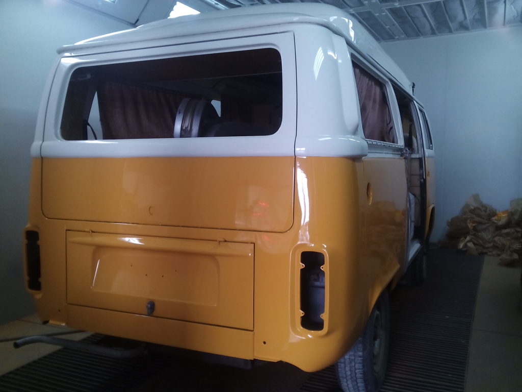 Entre 2 locations on en profite pour peindre en blanc d'origine volkswagen les pare-chocs et jantes de ce combi yellow…