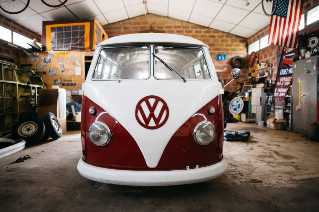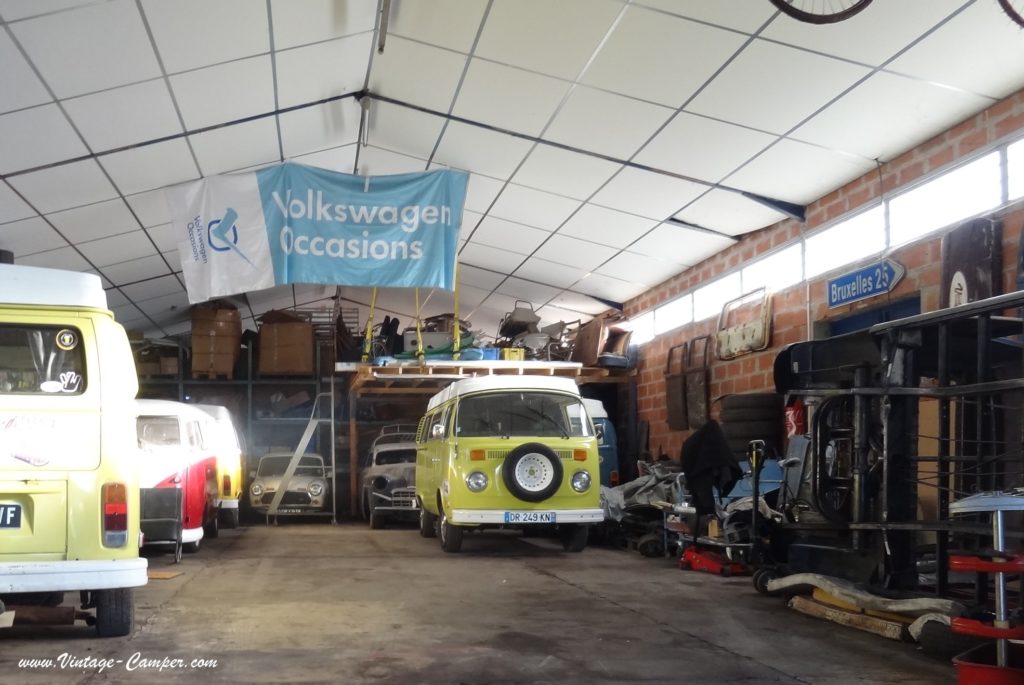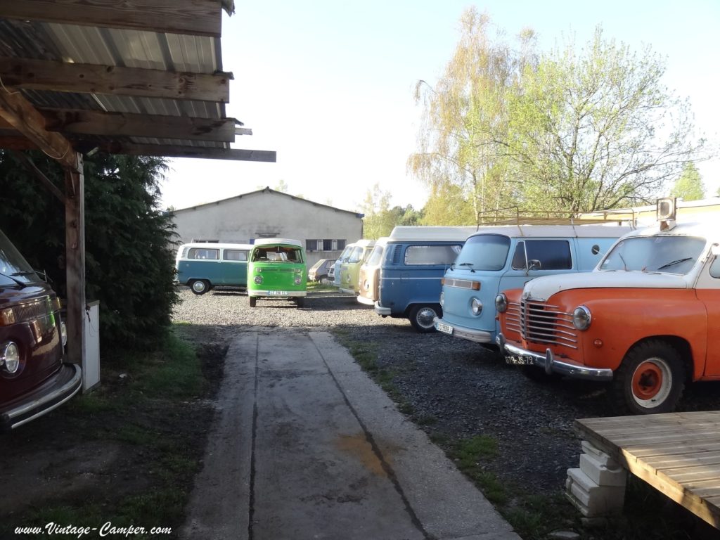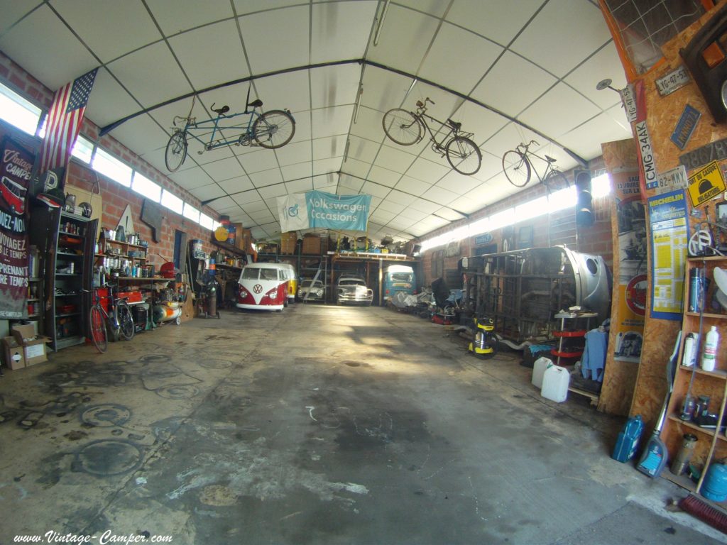 On voit que c'est l'été, le garage Vintage Camper est vide... tous les combi sont loués!