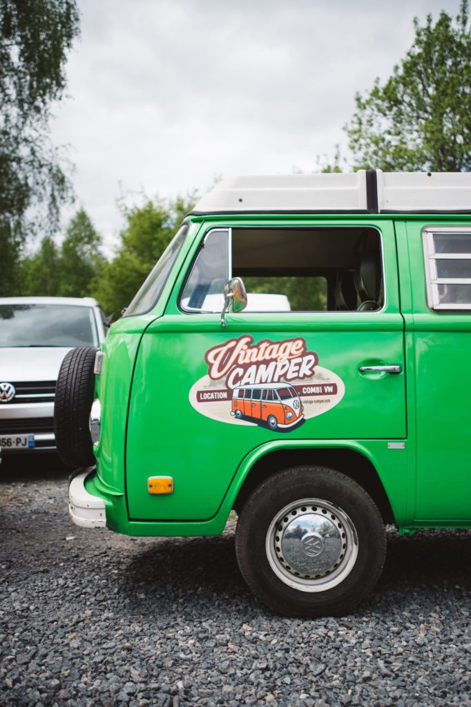 Un combi westfalia prêt à partir en location sous l'oeil de son petits fils California...