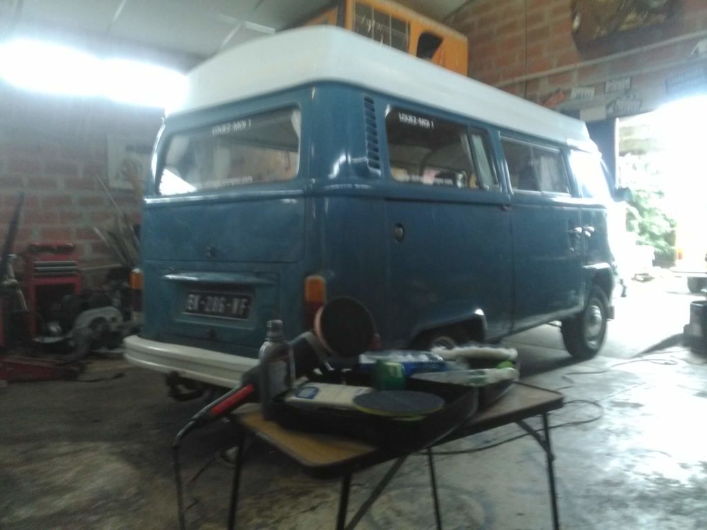 on termine la semaine avec le passage au polish de toute la carrosserie de notre combi automatique bleu riviera camper.
