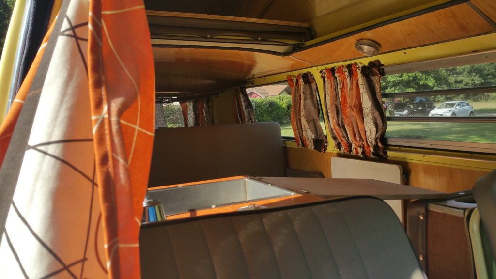 Voici une photo de l'interieur d'un de nos combi volkswagen en location depuis bordeaux!