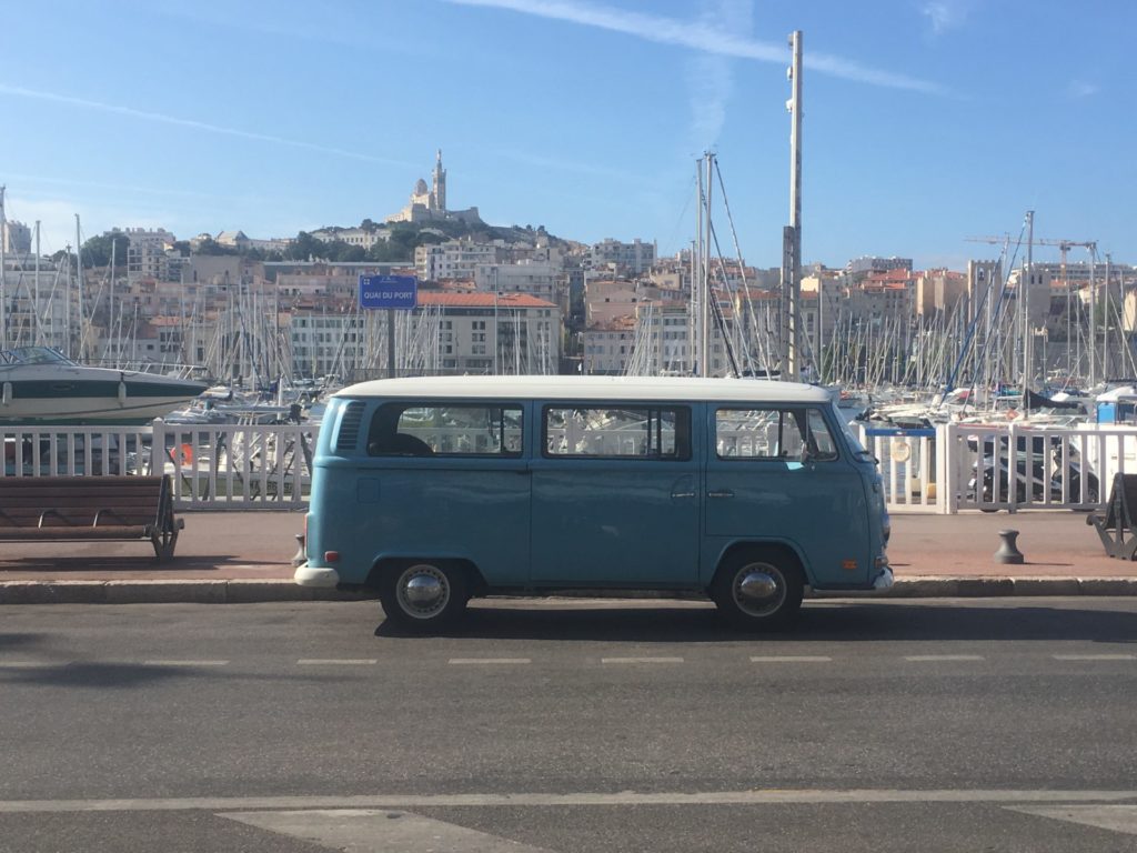 Le minibus bleu de l'agence de Lyon en visite à Marseille. Il se fond dans le décor non ?